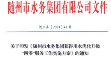 2.關于印發(fā)《隨州市水務集團獲得用水優(yōu)化升級“四零”服務工作實施方案》的通知