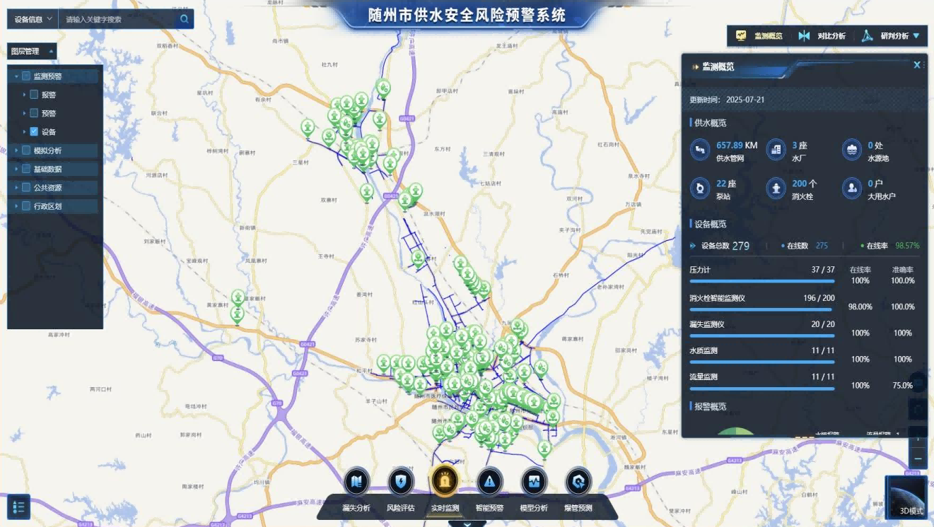 此次智慧水務建設的核心成果,是搭建起全市統(tǒng)一的智慧水務綜合管理平臺。這一平臺猶如功能強大的“中樞神經(jīng)系統(tǒng)”,高效匯聚著全市供水設施產(chǎn)生的海量實時運行數(shù)據(jù)。借助深度的數(shù)據(jù)挖掘、智能分析與可視化呈現(xiàn)技術(shù),實現(xiàn)了從水源、水廠、管網(wǎng)到二次供水乃至用戶終端的全鏈條精細化管理。它不僅讓供水服務的響應速度得到顯著提升,更使隨州水務的運營效率大幅優(yōu)化,為城市水資源的科學調(diào)度和高效利用提供了堅實有力的決策支撐。