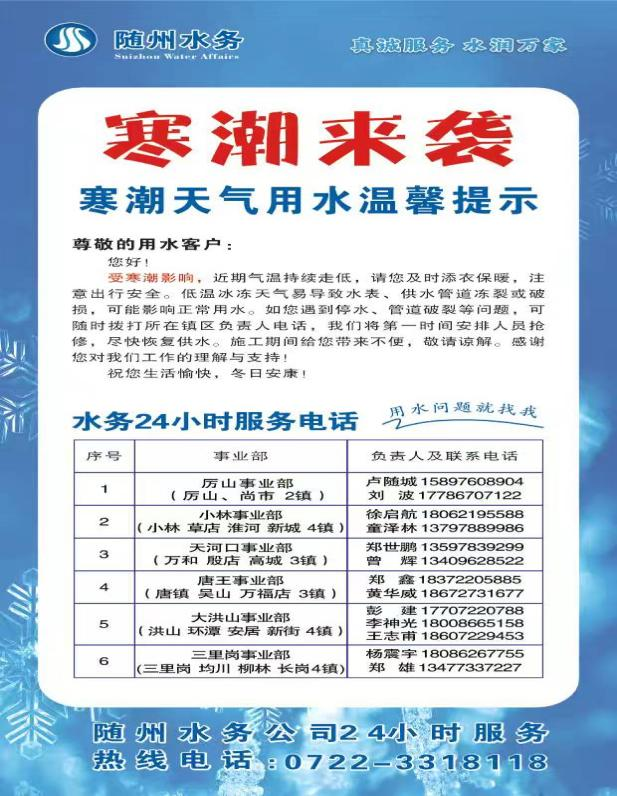 天冷不凍水,隨州水務(wù)守護(hù)你用水無憂!